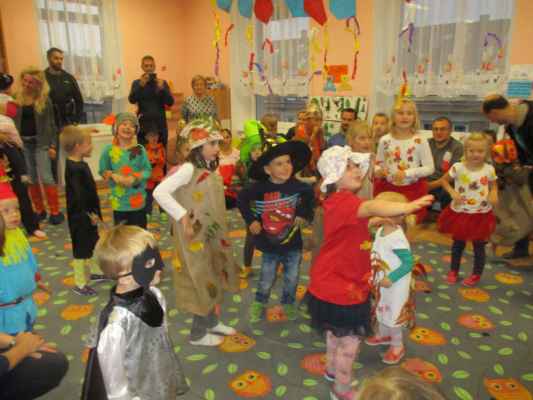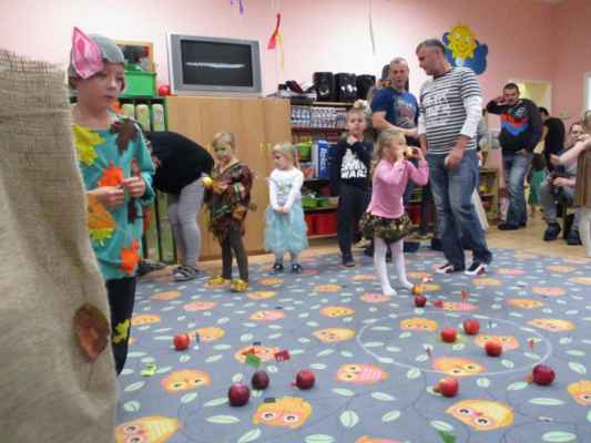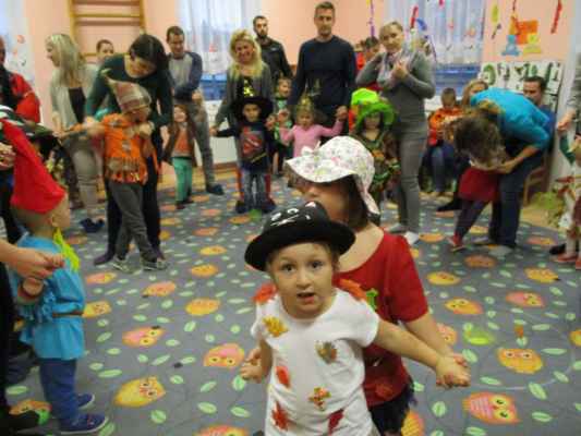 Slavnost začala za doprovodu hudby promenádou kostýmů, které byly naprosto úžasné. Nechyběli skřítci, lesní víly či panáčci z listí. Poté jsme zapojili i maminky a ty si s dětmi zatancovaly mazurku na písničku - Měla babka čtyři jabka.