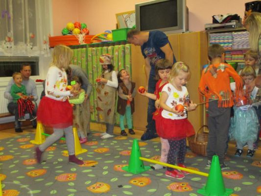 Během odpoledne byly pro děti připraveny i soutěže. Nejprve si ale děti museli vyrobit vlaječku se svou značkou, kterou využili v první soutěži. Ta spočívala v hodu jablíčka na vyznačený střed. Ten kdo byl nejblíže, získal odměnu. Dále následovala překážková dráha, kterou děti musely proběhnout s jablíčkem. Všichni dráhu zvládli a tak si zasloužili drobnou odměnu. Po soutěžích si děti zatancovaly na veselé písničky a občerstvily se dobrůtkami od rodičů.