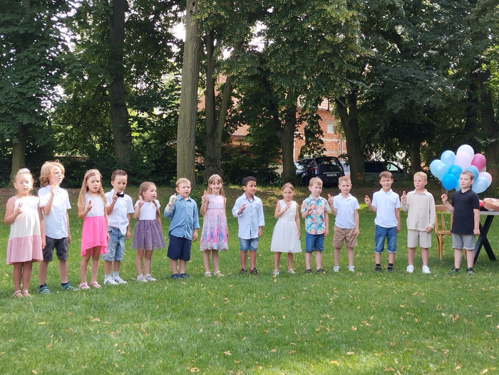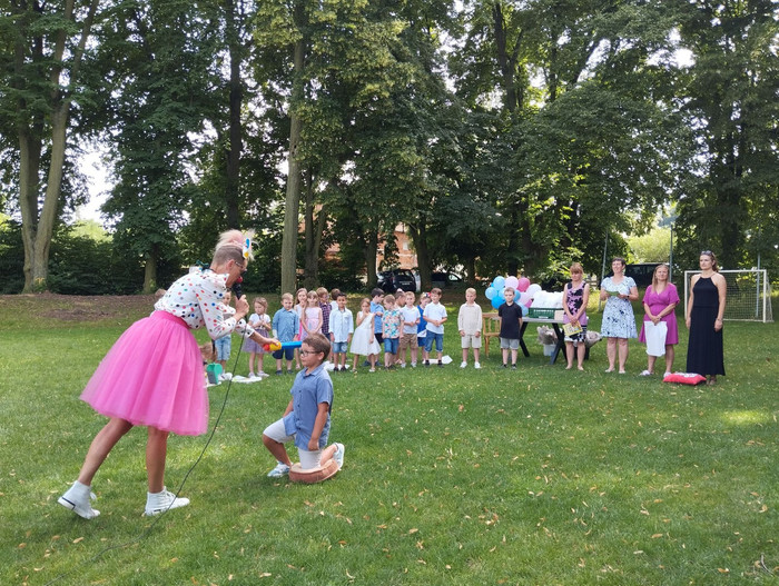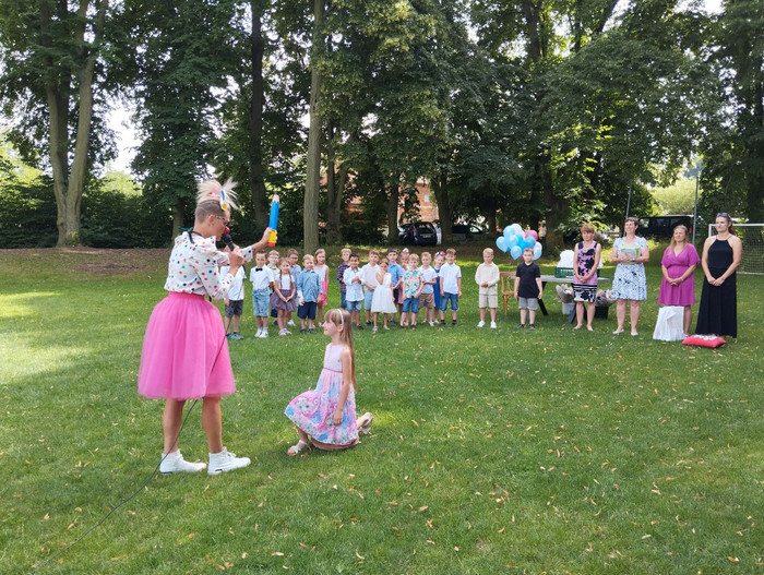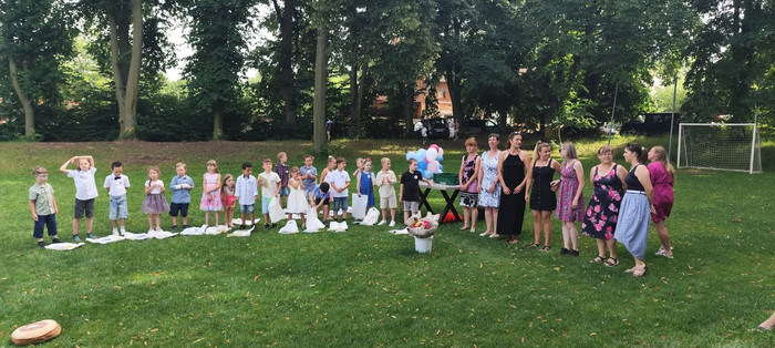 V pátek 21. 6. jsme si užili skvělé odpoledne na fotbalovém hřišti v Suchonicích. Oslavili jsme konec školního roku a rozloučili se s předškoláky, kteří si pro nás připravili pěkné vystoupení. Další program nám zajistila paní klaunka z Klaun Family, která dokonce pasovala naše děti na školáky. Pro děti i rodiče bylo připraveno bohaté občerstvení a paní provozní ze školky nám upekla výborný dort. Děkujeme všem za účast a přejeme krásné léto.